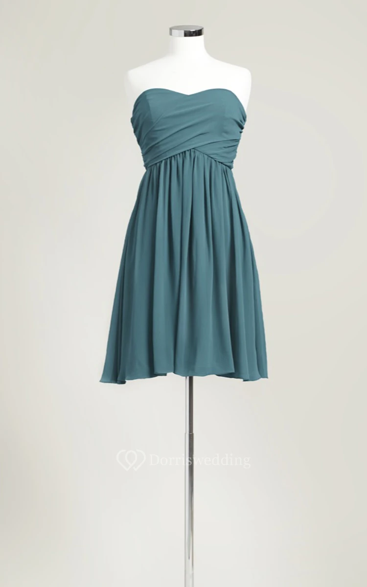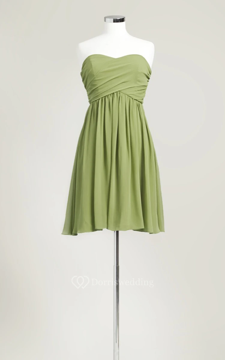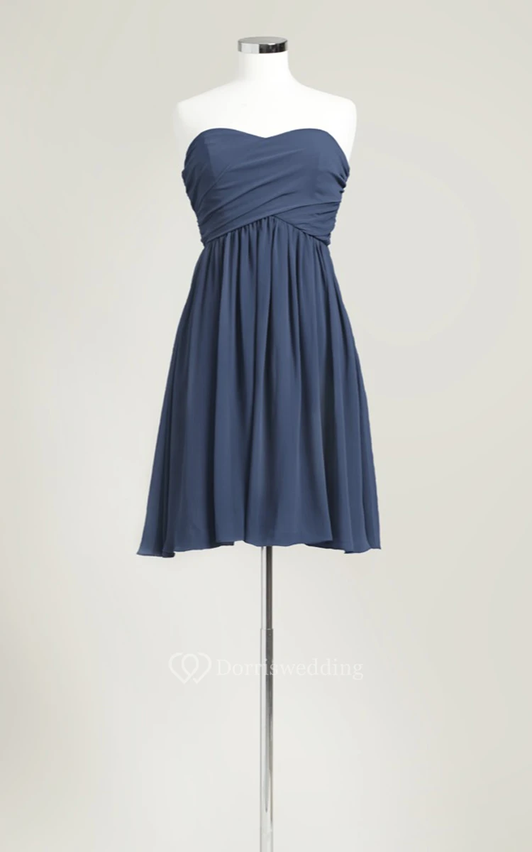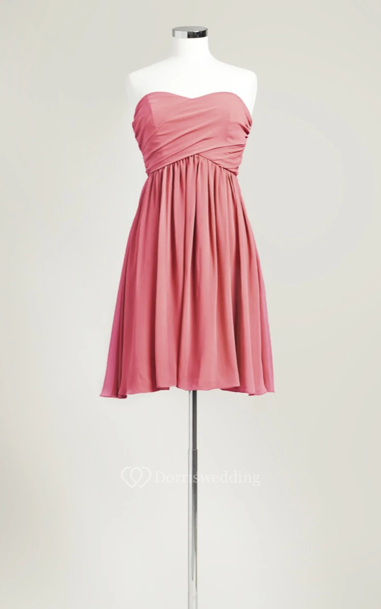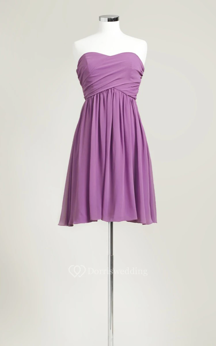 Sweetheart Short Chiffon Dress With Pleats And Ruching