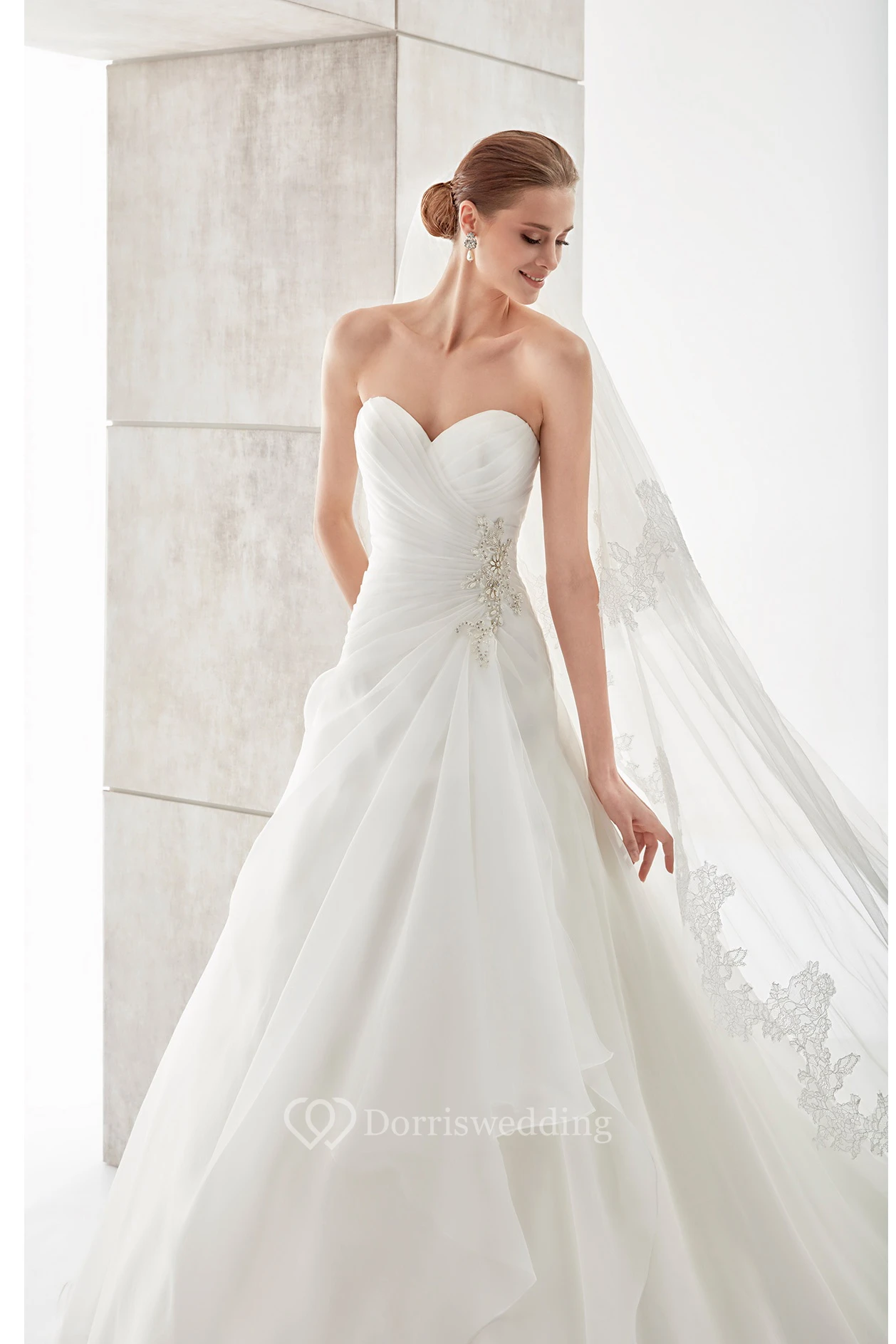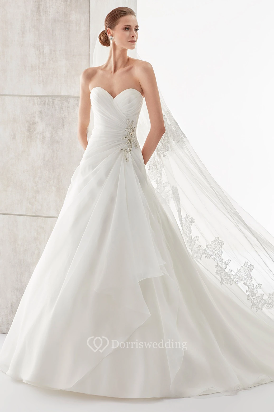 Sweetheart Side-Draping A-Line Wedding Dress With Side Beadings And Pleated Bodice