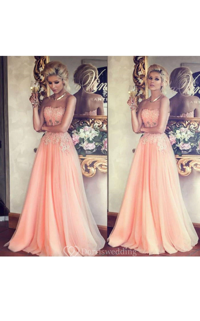 Sweetheart Sleeveless Appliques Long Tulle Lace Dress