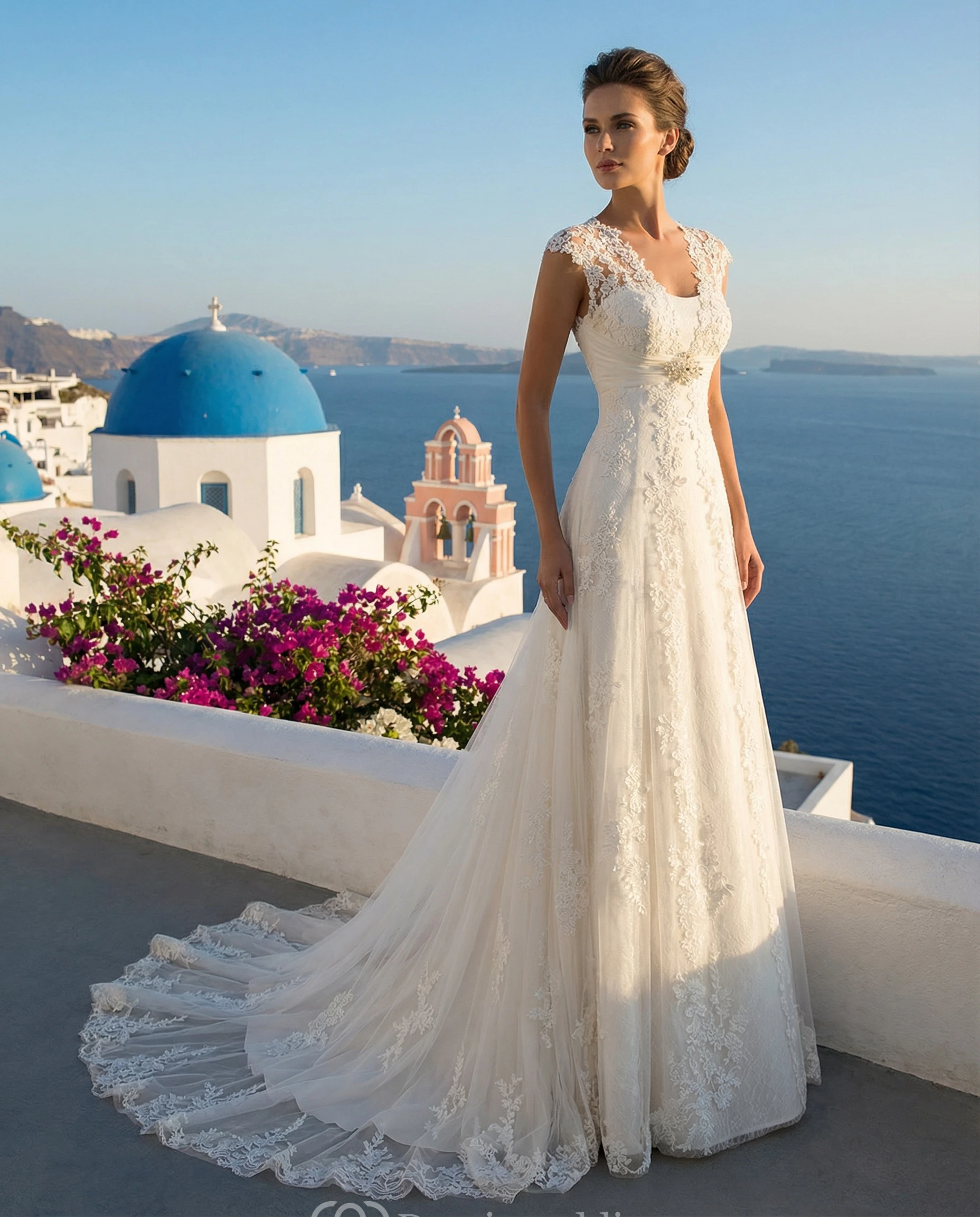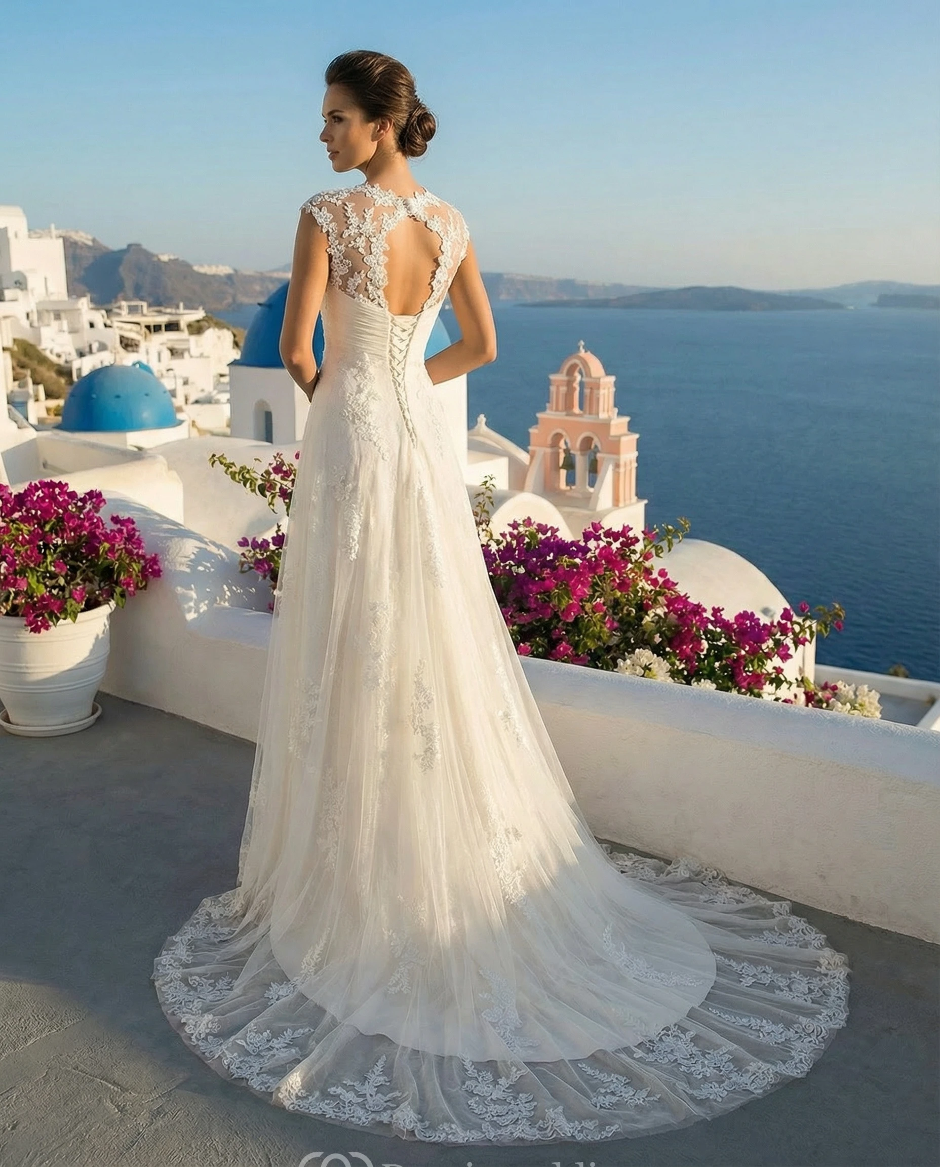To make it easier for you to walk post-ceremony and dance, our seamstresses add buttons, or ribbons into the dress by lifting up the train or tucking it into itself.