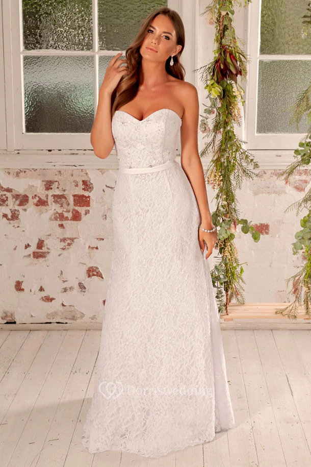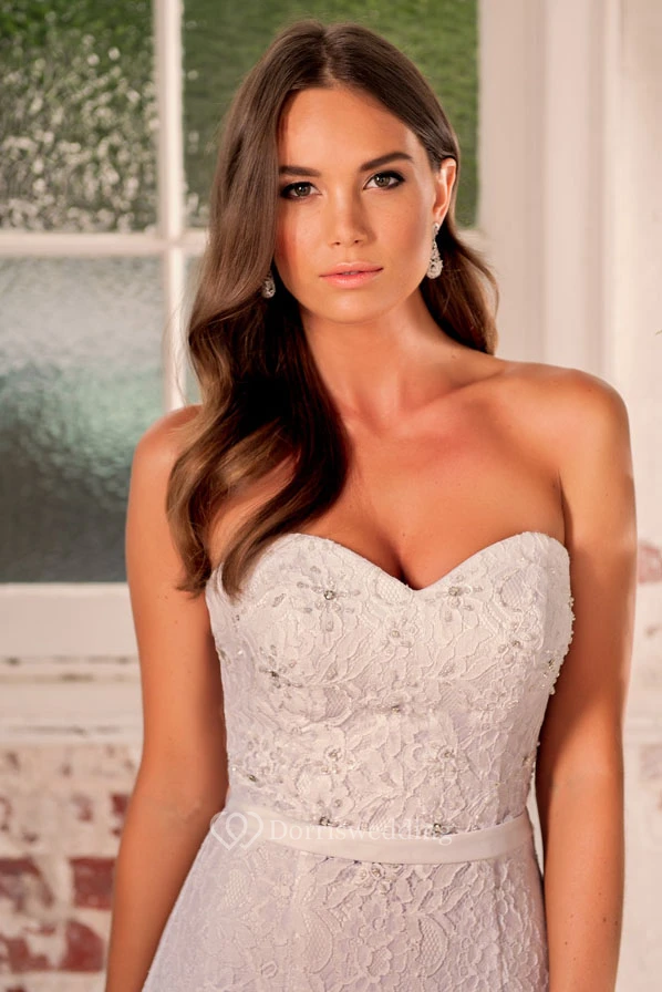 Sweetheart Sleeveless Beaded Maxi Lace Wedding Dress With Sash