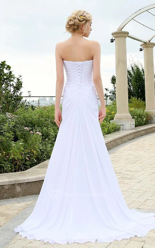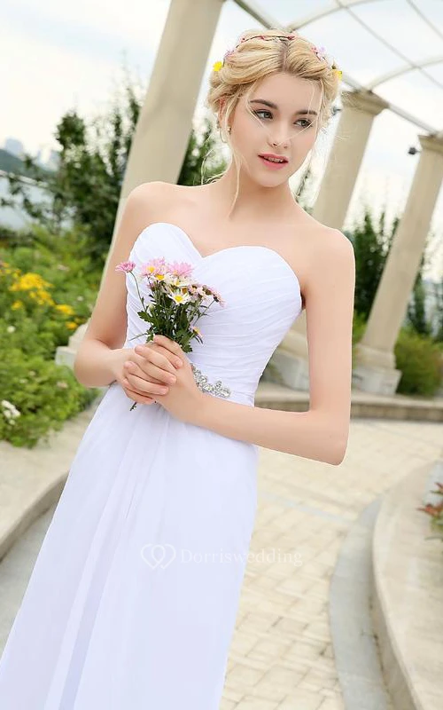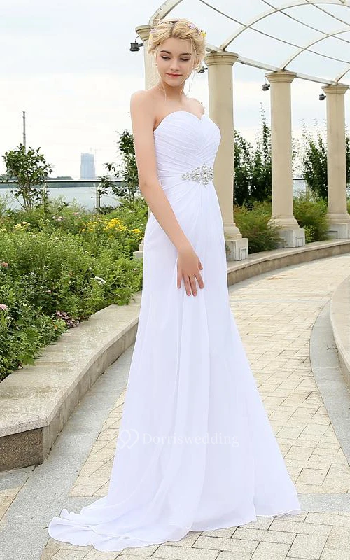 • Hemline/Train: Floor-length, Sweep/Brush Train