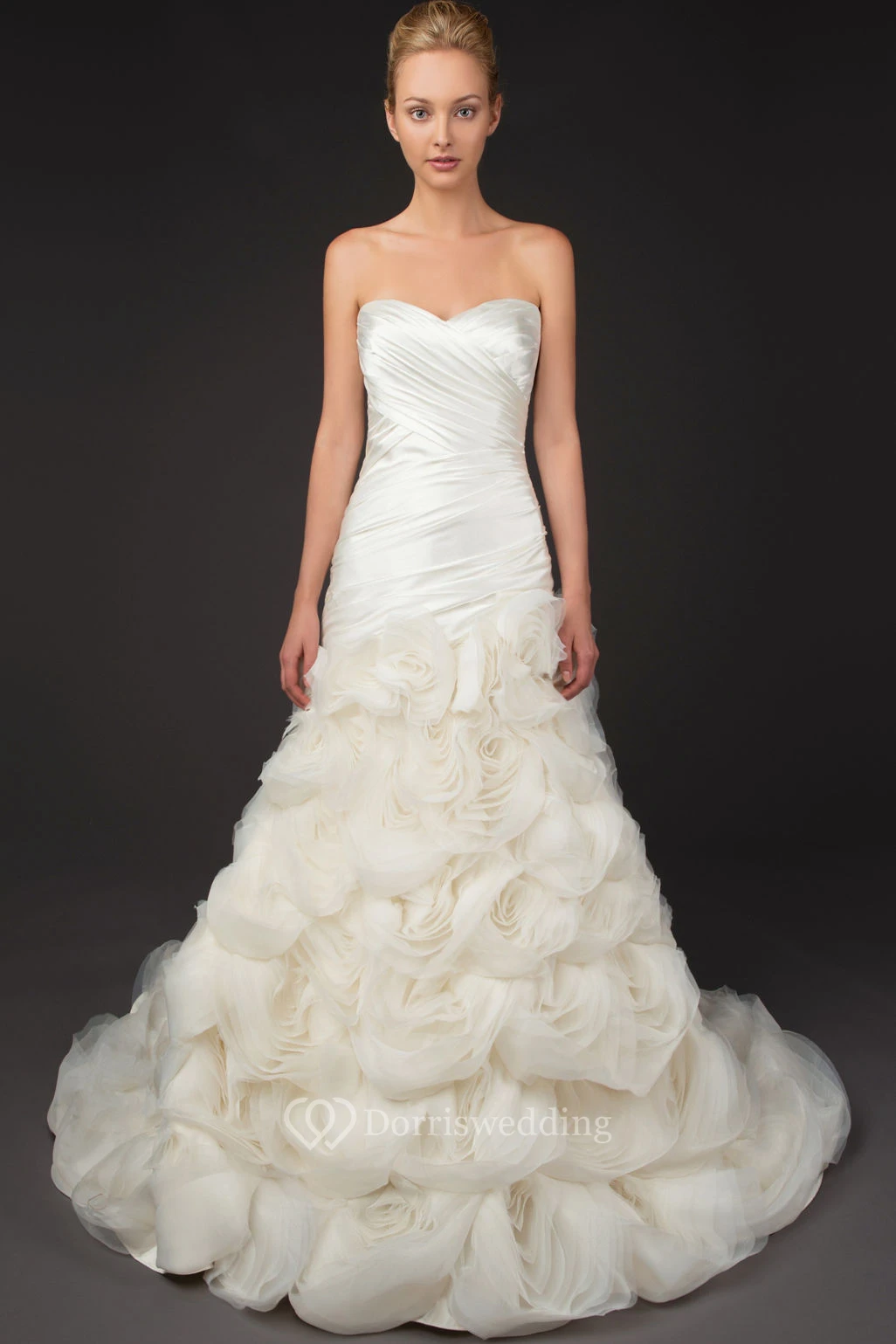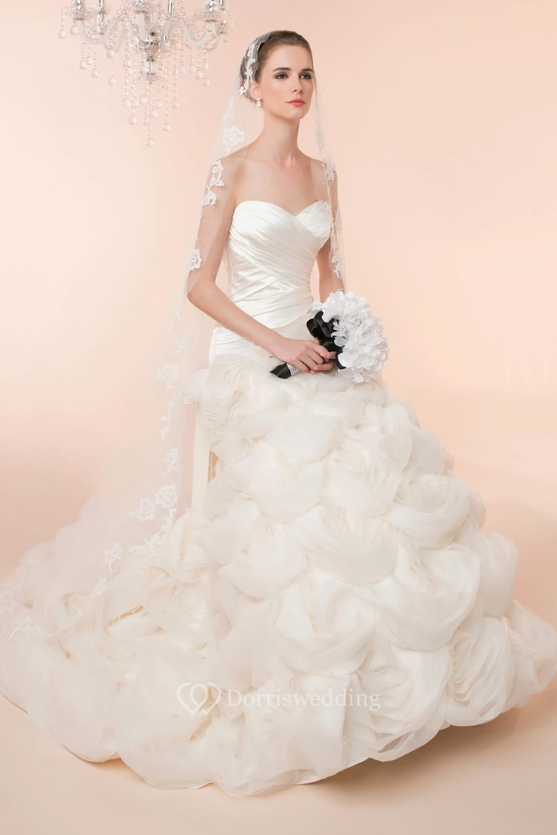 Sweetheart Sleeveless Floral Satin Wedding Dress