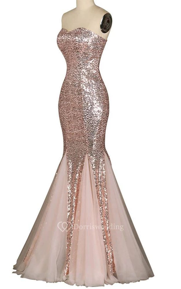 Sweetheart Sleeveless Lace-Up Back Sequins Dress