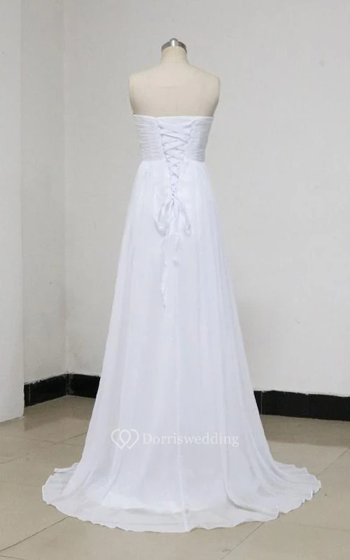 Sweetheart Sleeveless Split Corset Back Chiffon Lace Dress