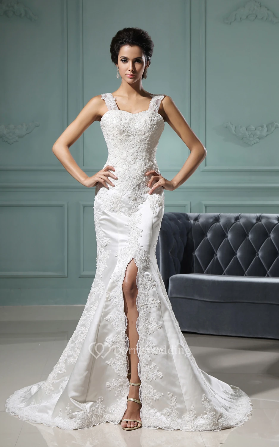 Sweetheart Strap-Neckline Front-Split Dress With Lace Detailing