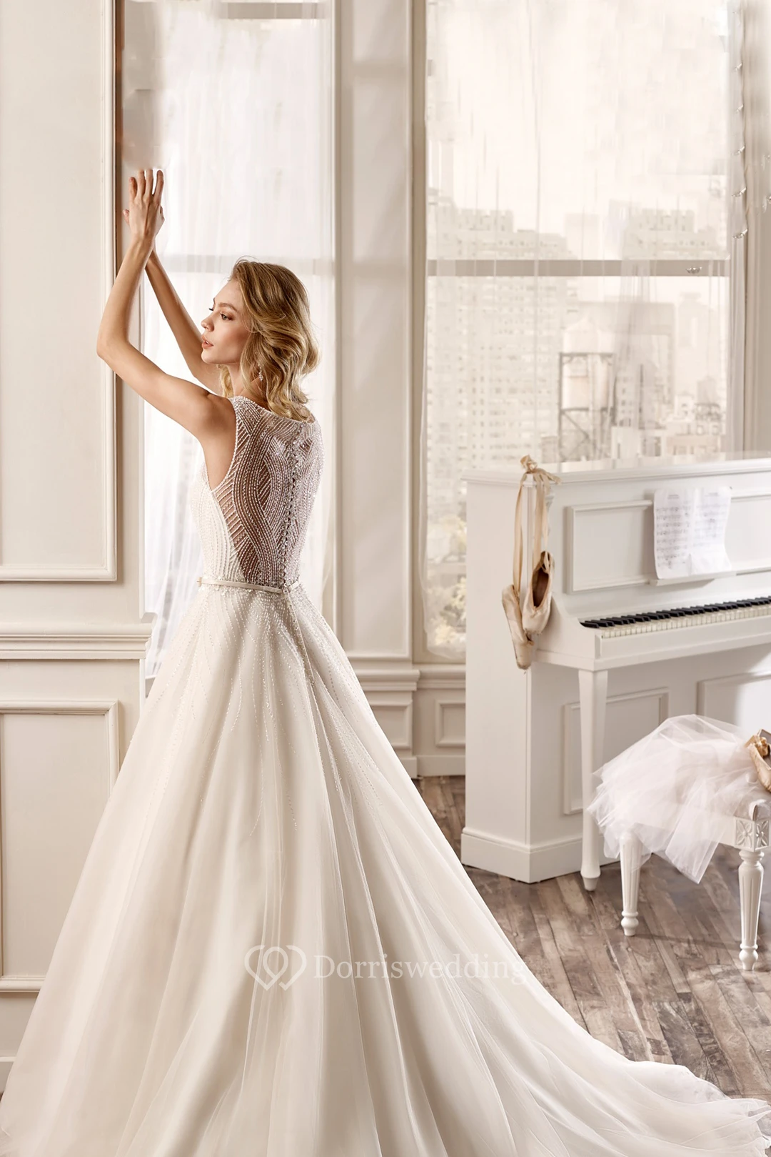 Sweetheart Strapless A-Line Wedding Dress With Illusive Back And Puffed Ruching Skirt