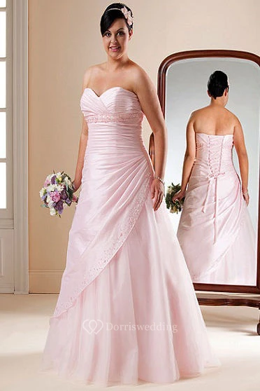 Sweetheart Taffeta Wrapped Bridal Gown With Lace Up And Organza Skirt
