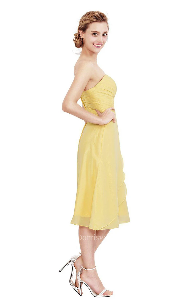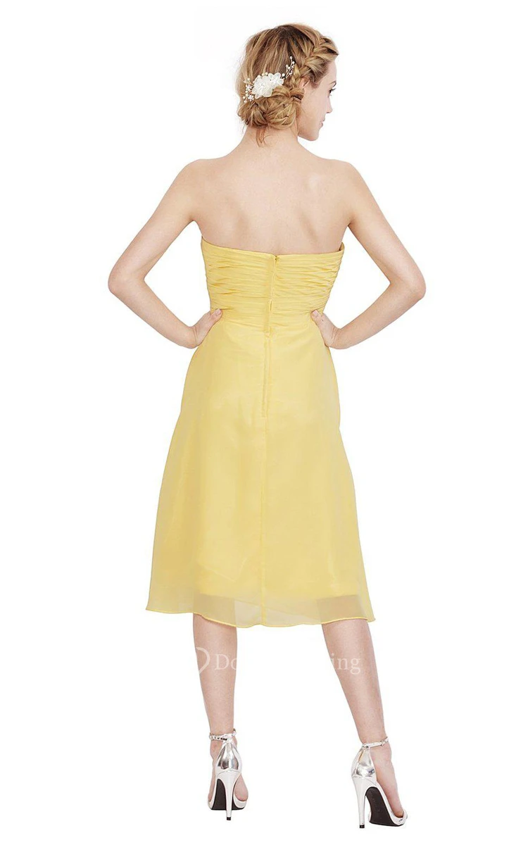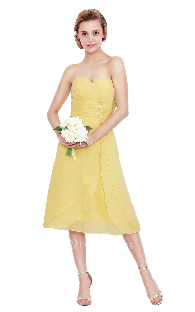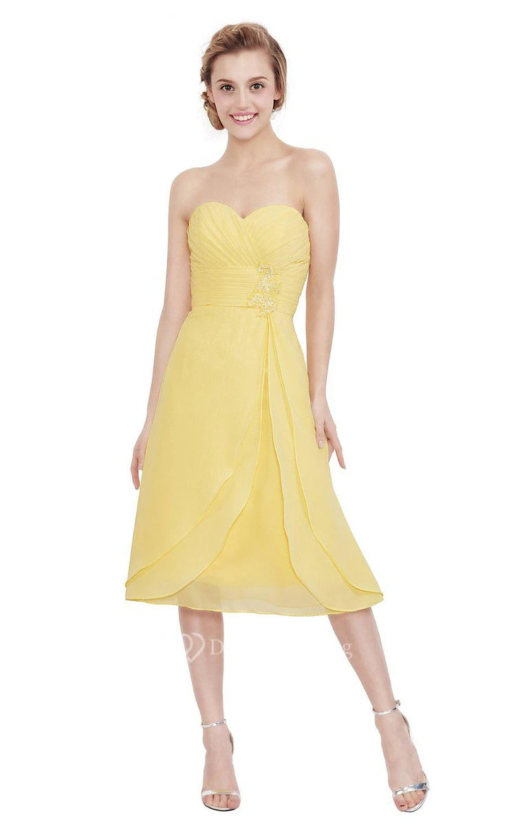 Sweetheart Tea-length Chiffon Dress With Pleats