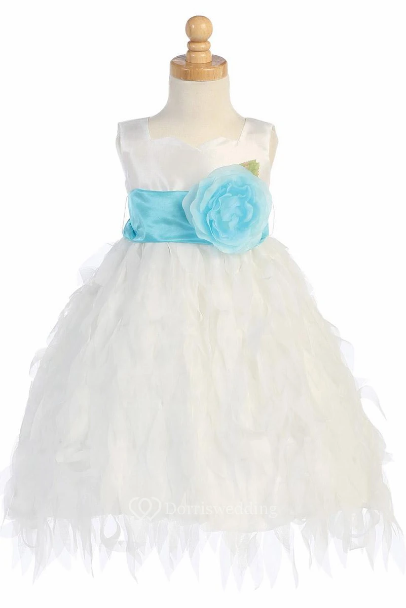 Sweetheart Tea-Length Tiered Chiffon&Taffeta Flower Girl Dress