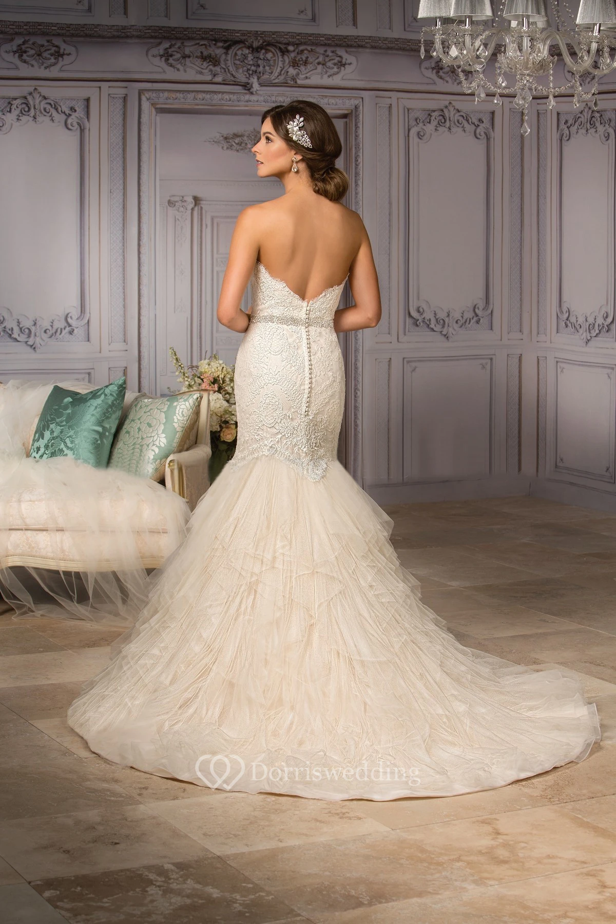 Sweetheart Trumpet Gown With Lace Appliques And Ruffles
