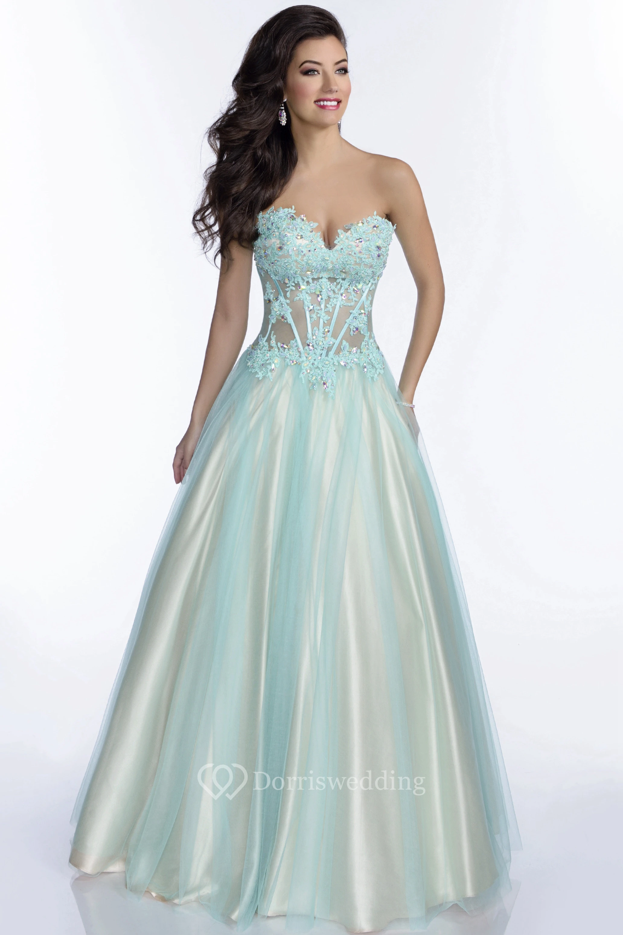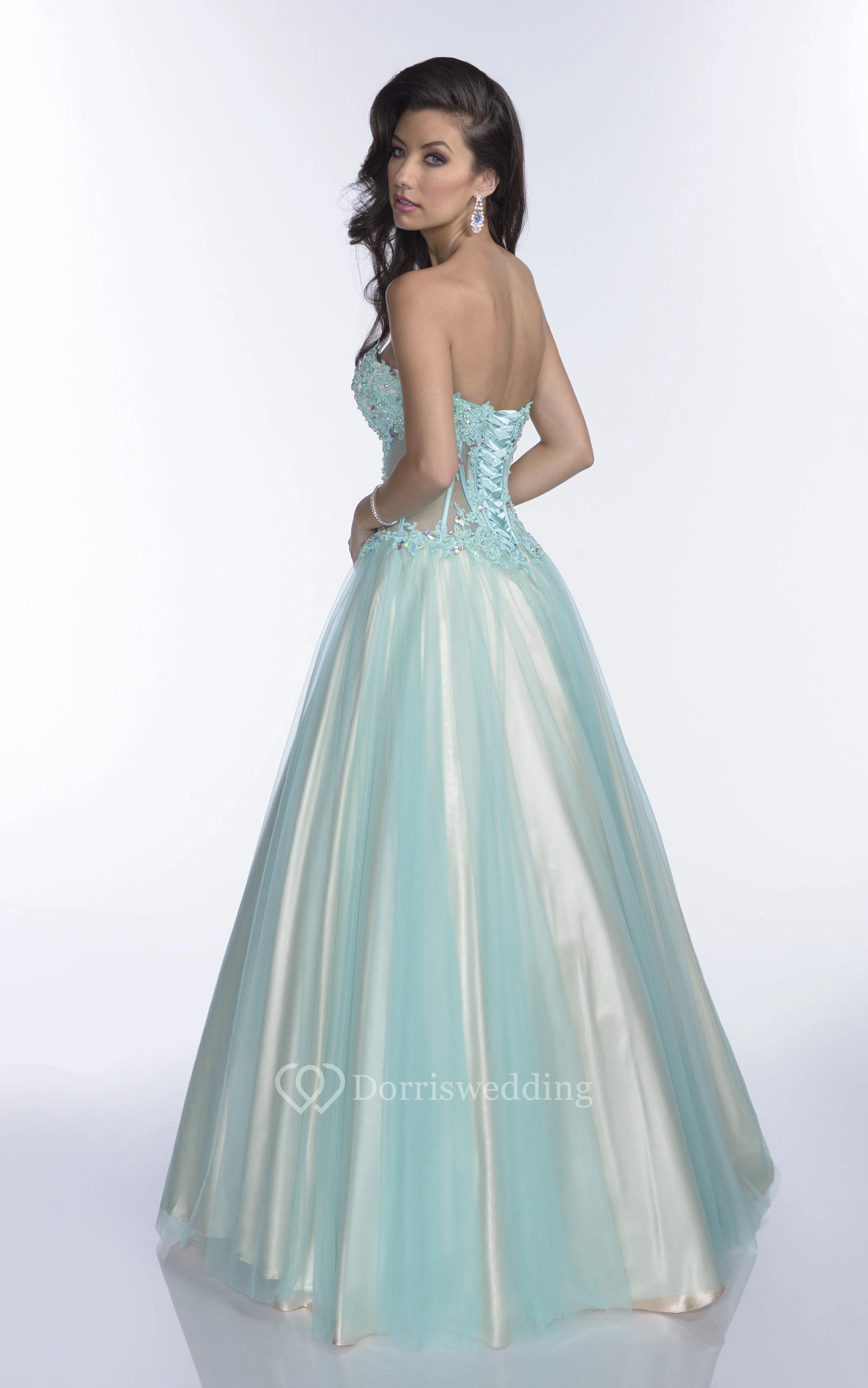 Sweetheart Tulle A-Line Gown With Lace Appliques And Lace-Up Back