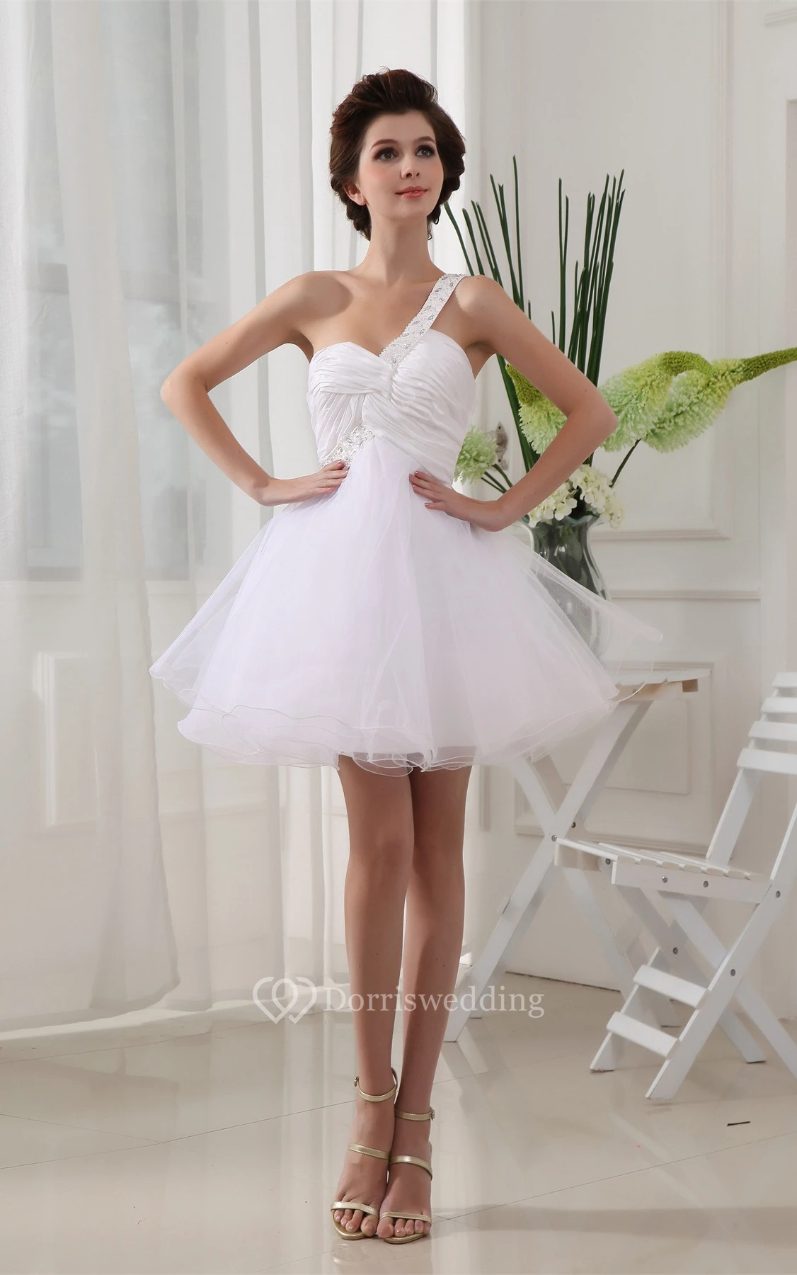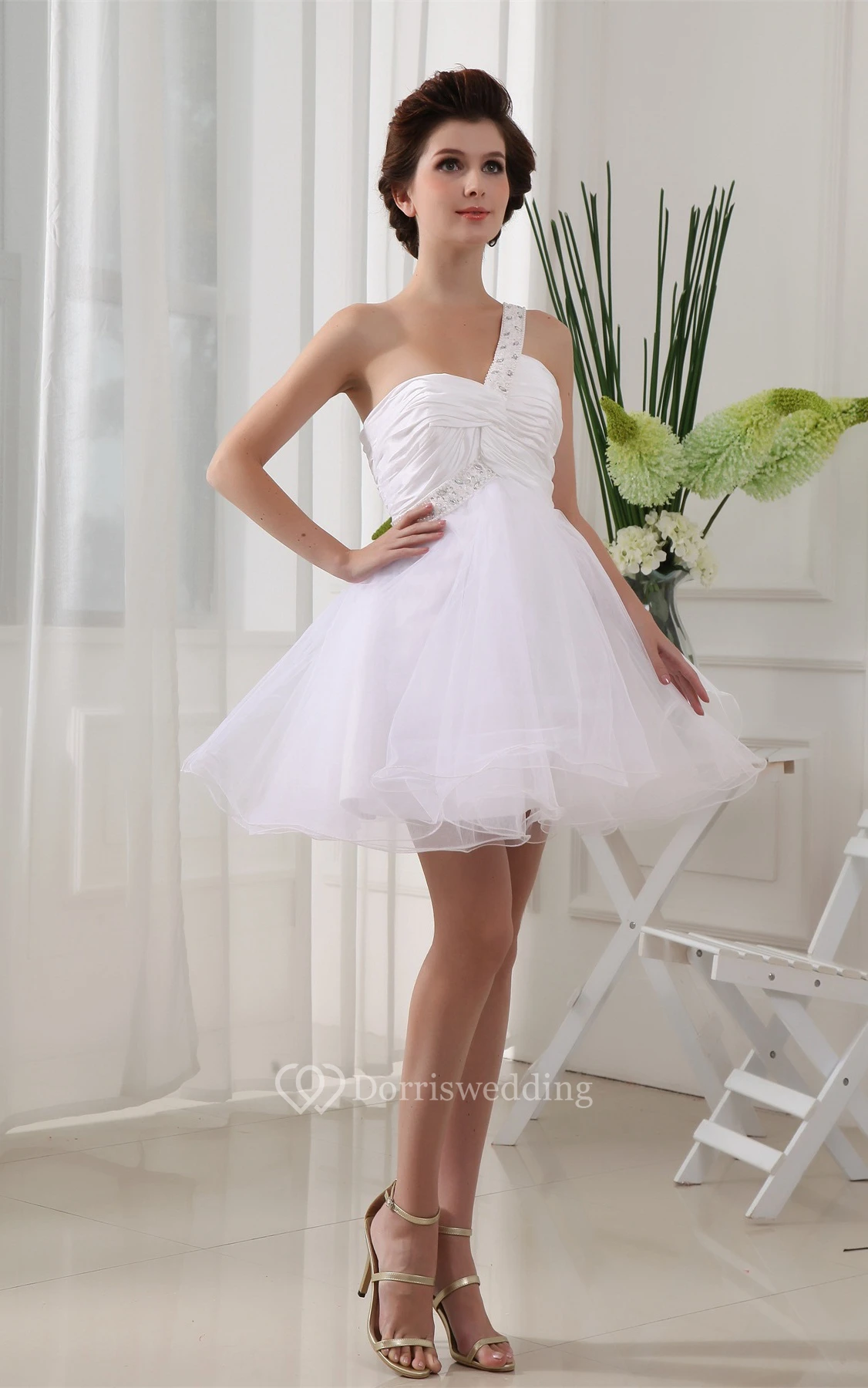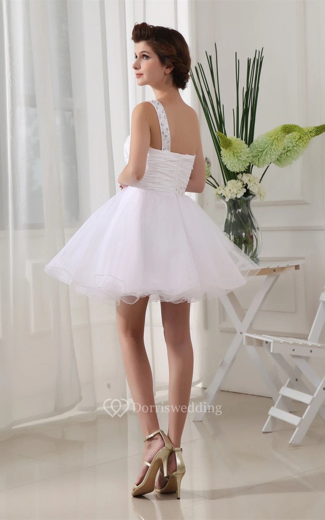 Sweetheart Tulle A-Line Short Criss-Cross Dress With Jeweled Strap