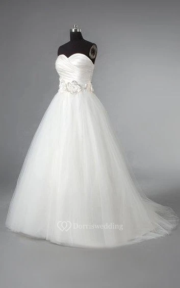 Sweetheart Tulle Ball Gown With Ruched Crisscross Bodice and Beaded Flowers
