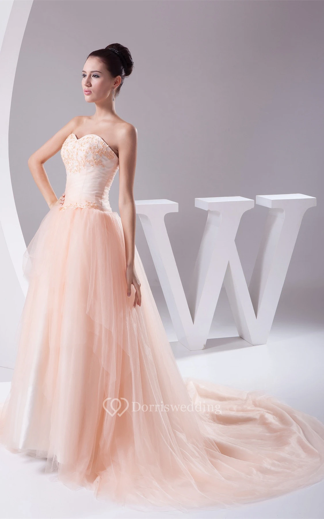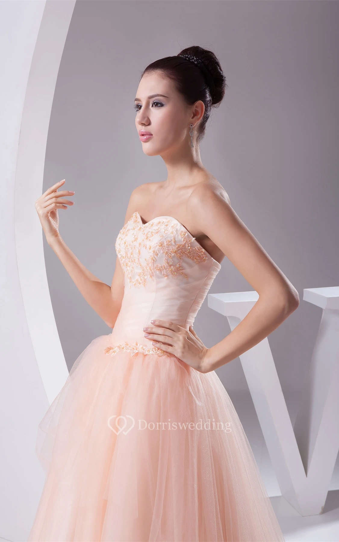 Sweetheart Tulle Criss-Cross Ball-Gown With Appliqued Top