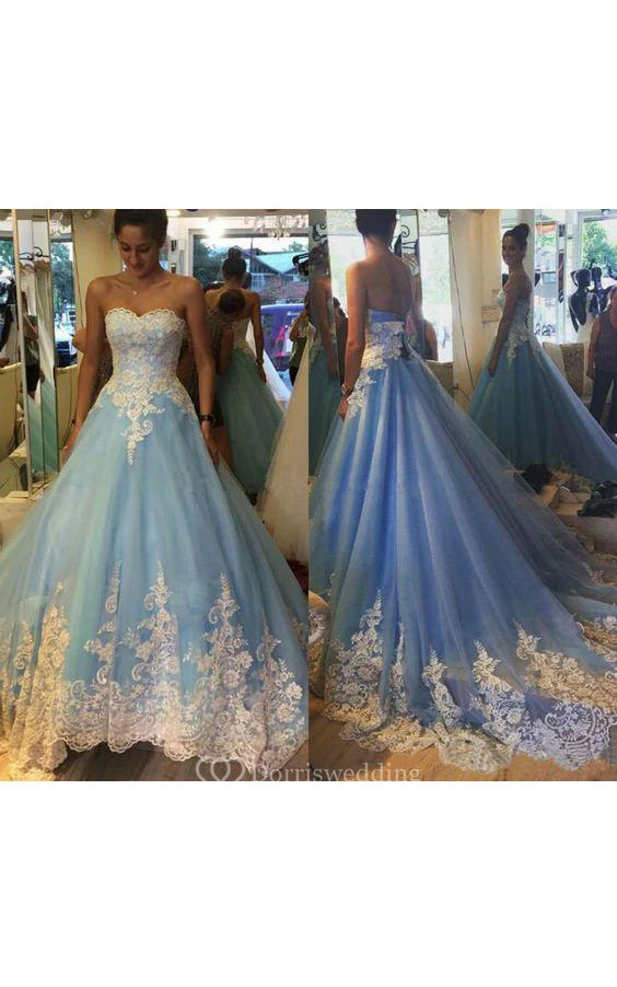 Sweetheart Tulle Lace Appliques Lace Corset Back Dress