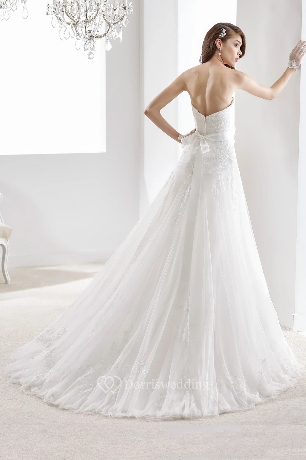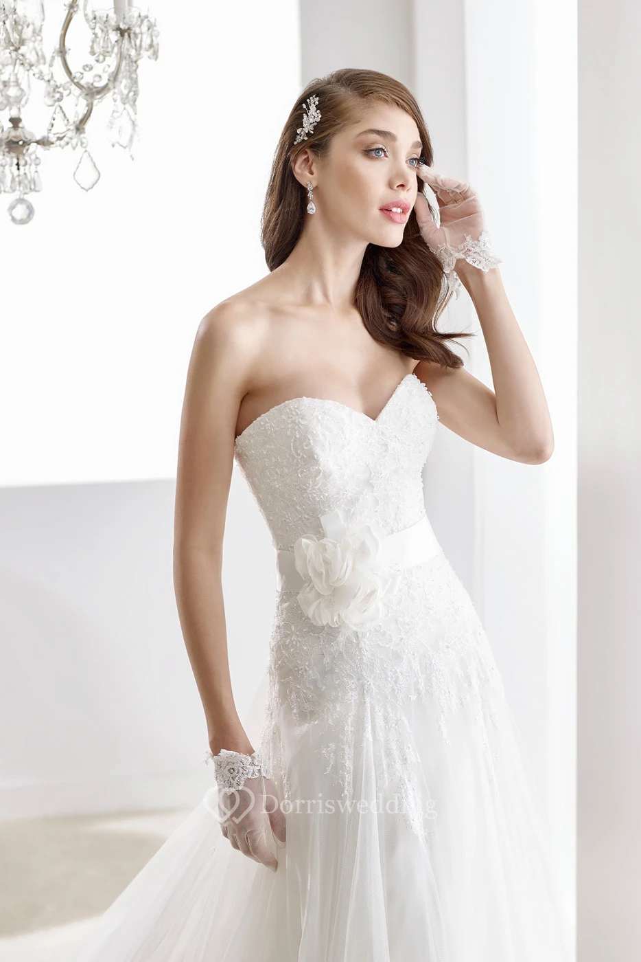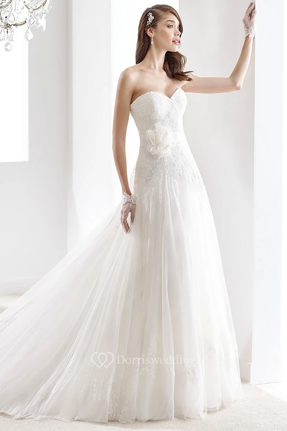 Sweetheart Wedding Gown with Flower on Side Waist and Back Bow