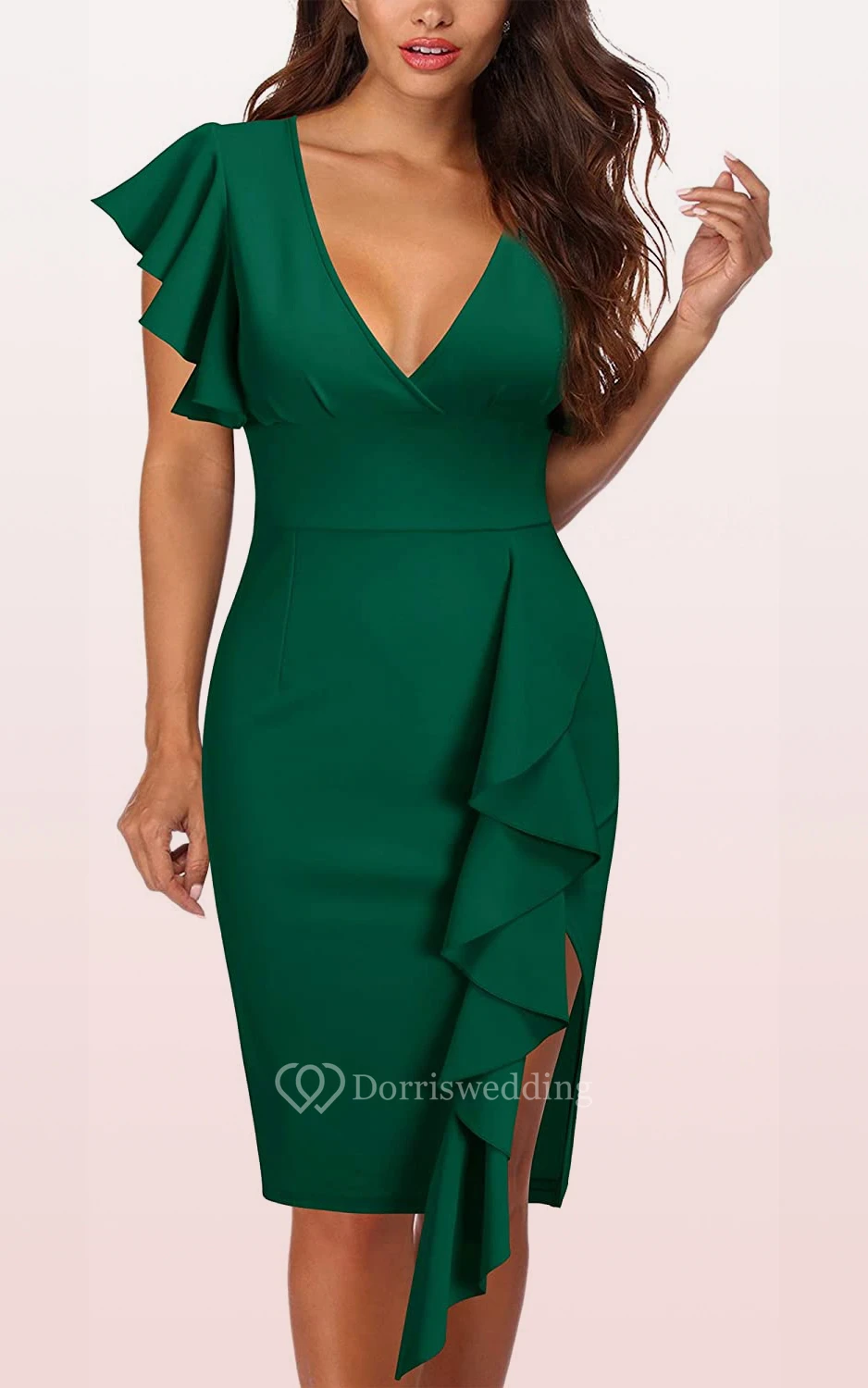 Taffeta Knee-length Pencil Short Sleeve Elegant Dress with Ruffles
