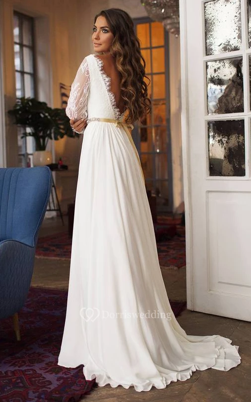 • Hemline/Train: Floor-length, Sweep/Brush Train