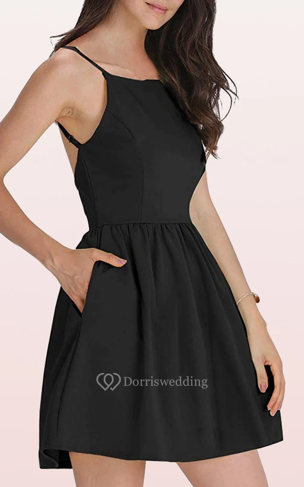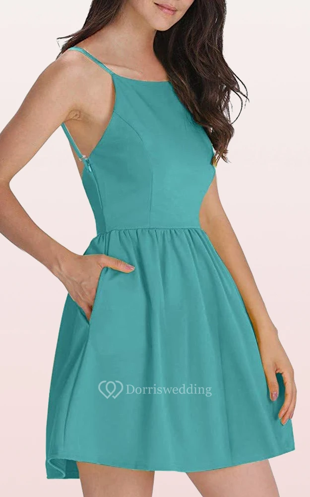 Taffeta Short A Line Sleeveless Simple Cocktail Dress with Pockets