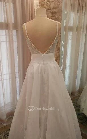 Taffeta Sleeveless A-Line Dress With Spaghetti Straps and Low-V Back