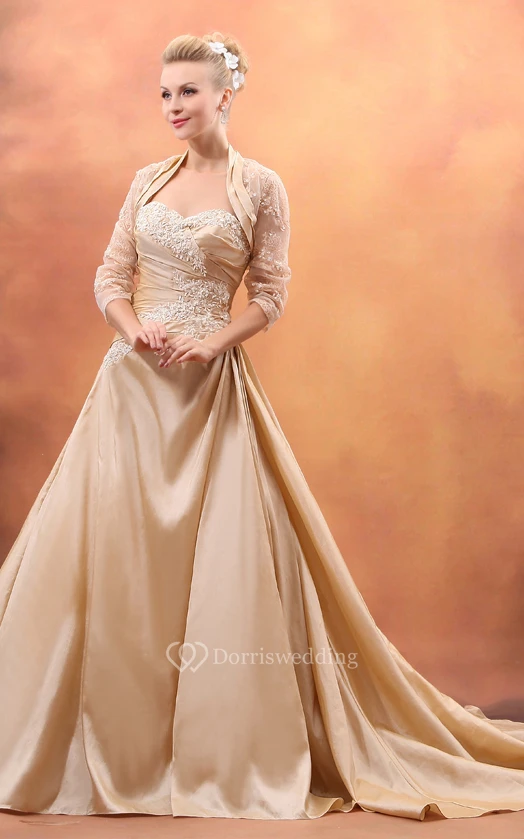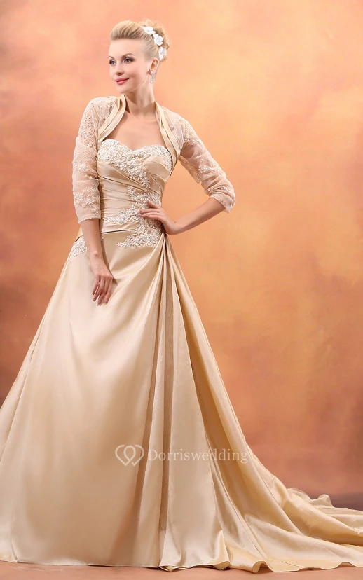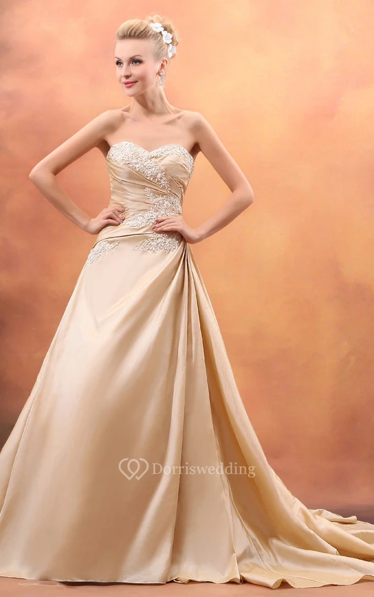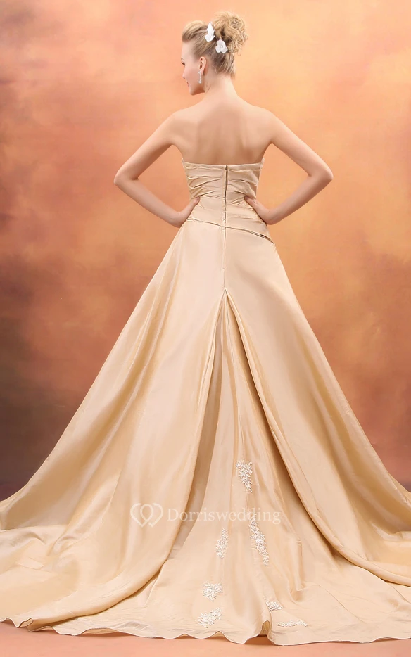Taffeta Sweetheart A-Line Mother Of Bride Dress With Ruching and Chapel Train