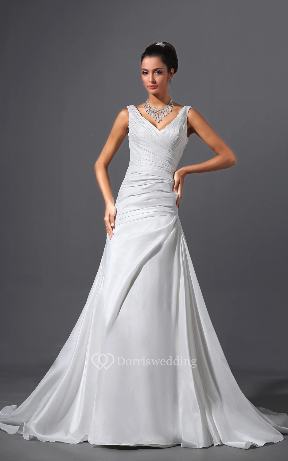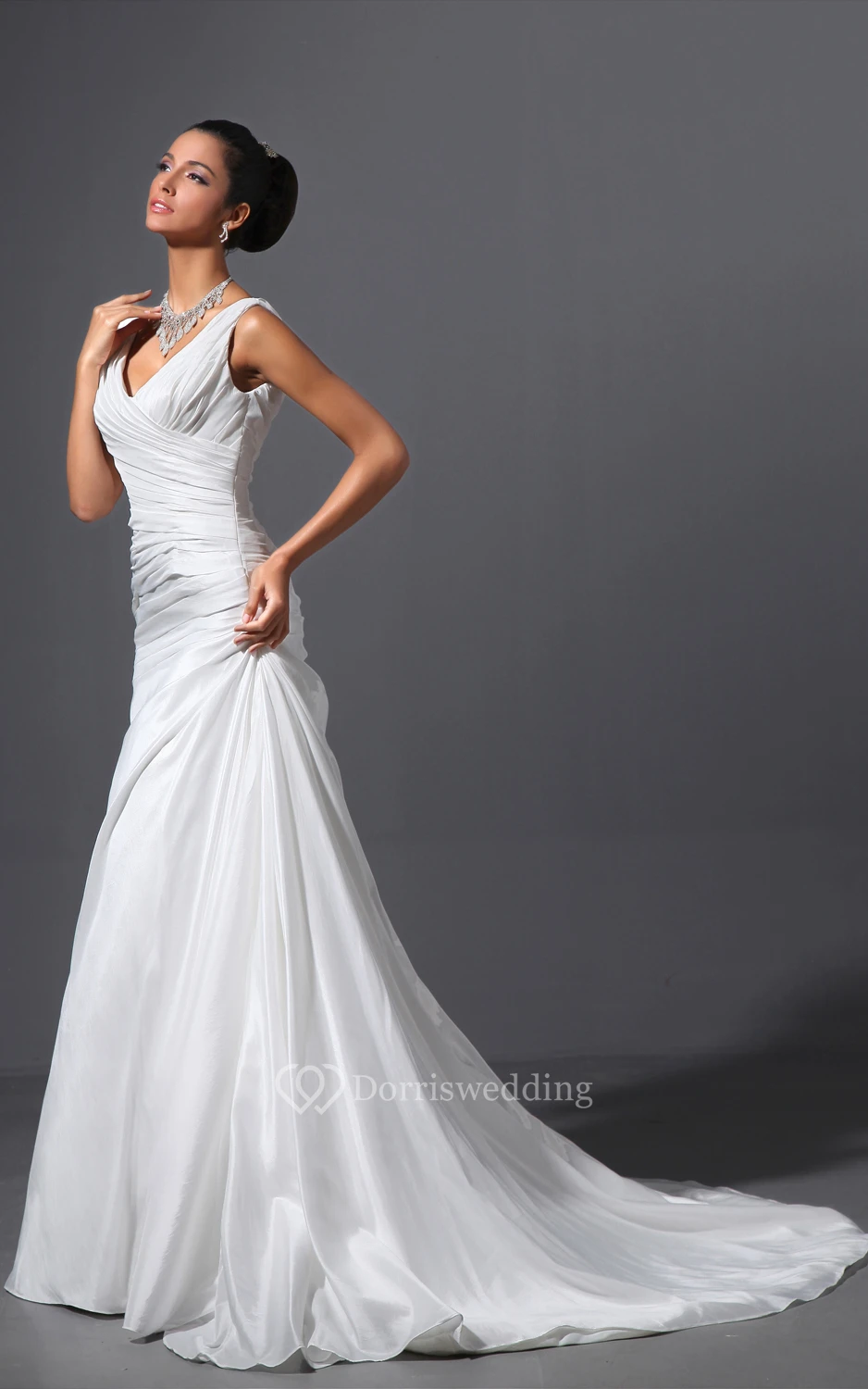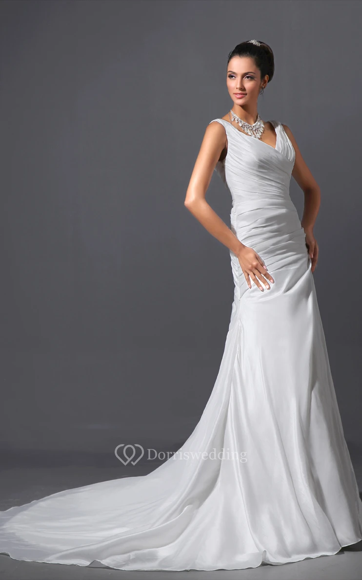 Taffeta V-Neck Sheath Dress With Ruching and Court Train