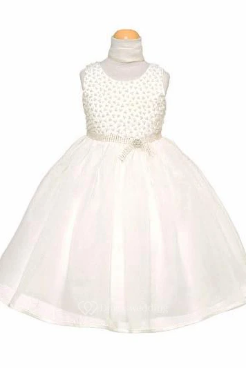 Tea-Length Beaded Cap-Sleeve Organza&Satin Flower Girl Dress With Cape