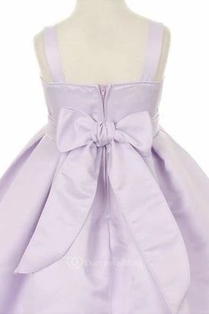Tea-Length Beaded Sleeveless Satin Flower Girl Dress