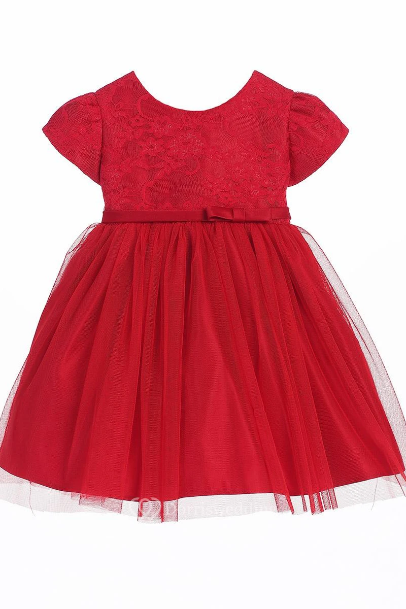 Tea-Length Bowed Lace&Satin Flower Girl Dress