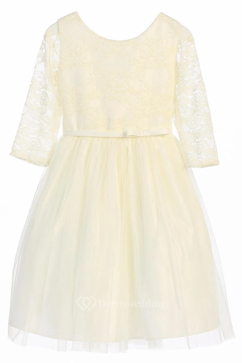 Tea-Length Bowed Lace&Satin Flower Girl Dress