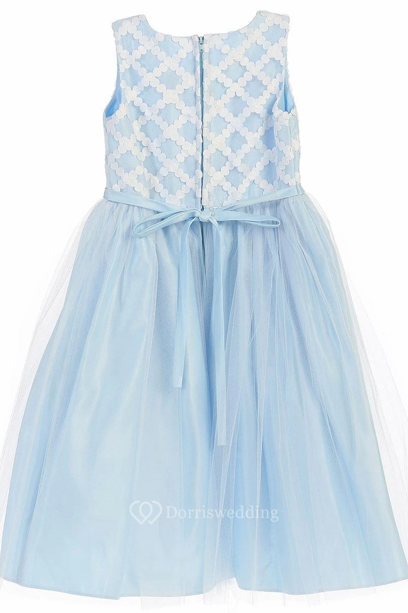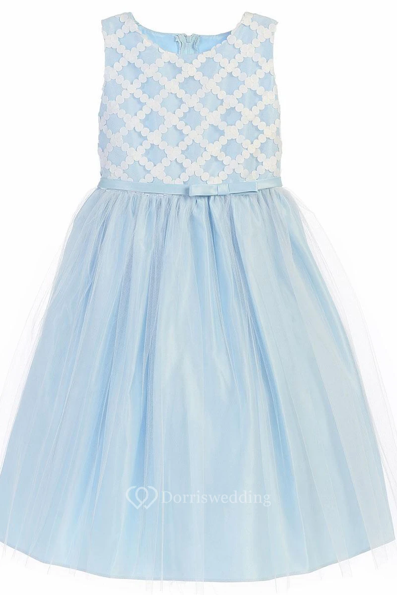 Tea-Length Bowed Sleeveless Tulle&Satin Flower Girl Dress
