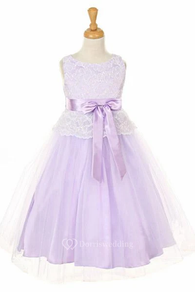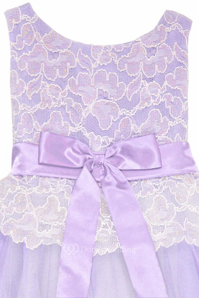 Tea-Length Bowed Tulle&Lace Flower Girl Dress