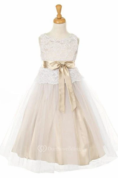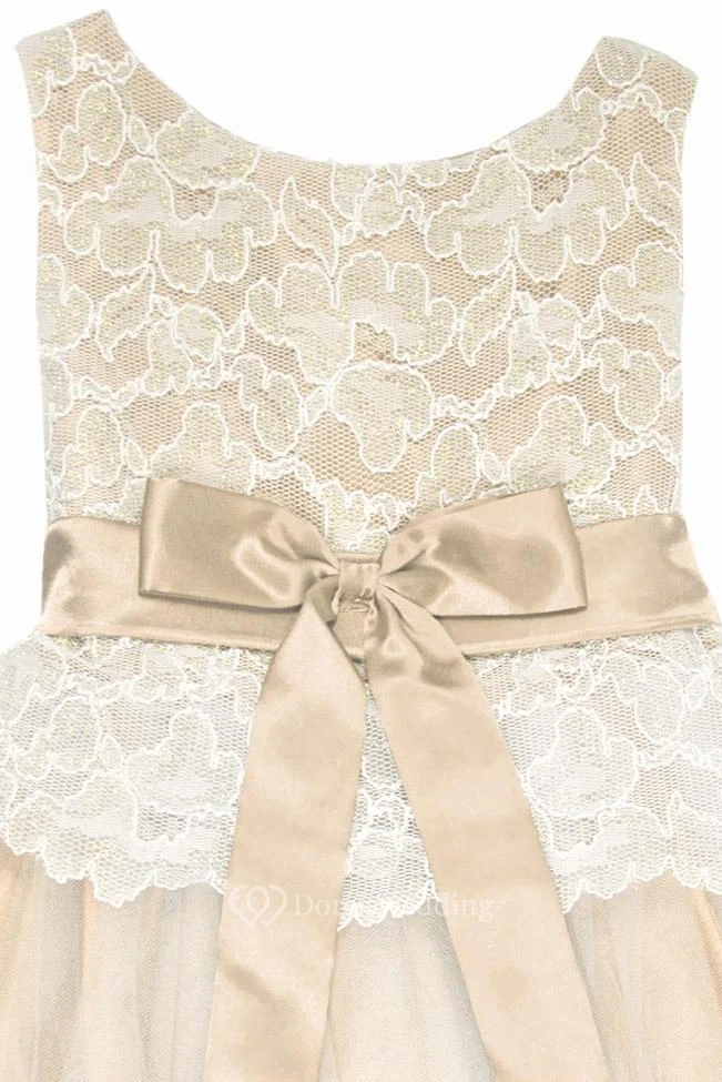 Tea-Length Bowed Tulle&Lace Flower Girl Dress