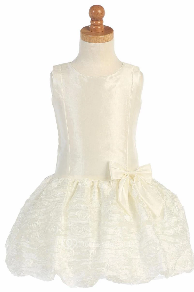 Tea-Length Bowed Tulle&Taffeta Flower Girl Dress With Embroidery