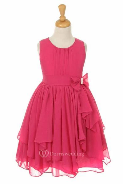 Tea-Length Broach Bowed Chiffon Flower Girl Dress