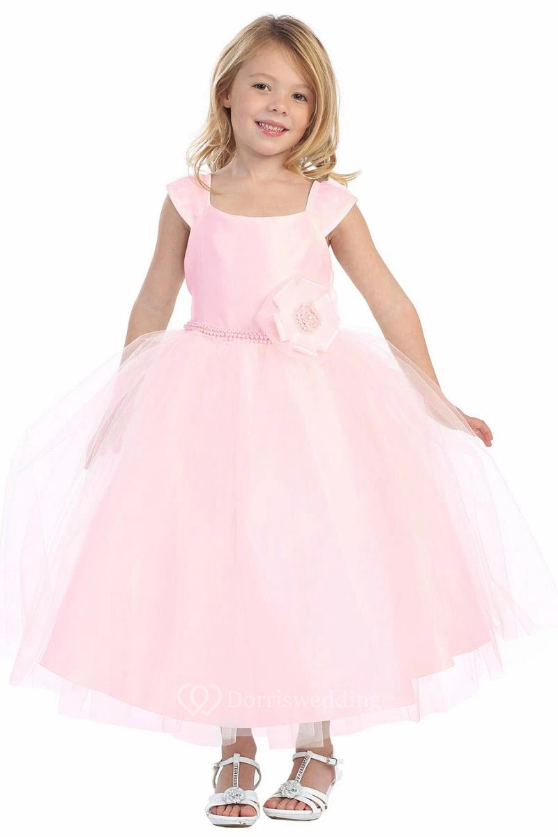Tea-Length Cap-Sleeve Tiered Flower Girl Dress