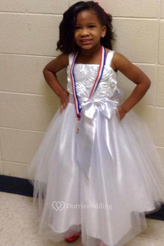 Tea-Length Embroideried Bowed Split-Front Tulle&Satin Flower Girl Dress With Sash