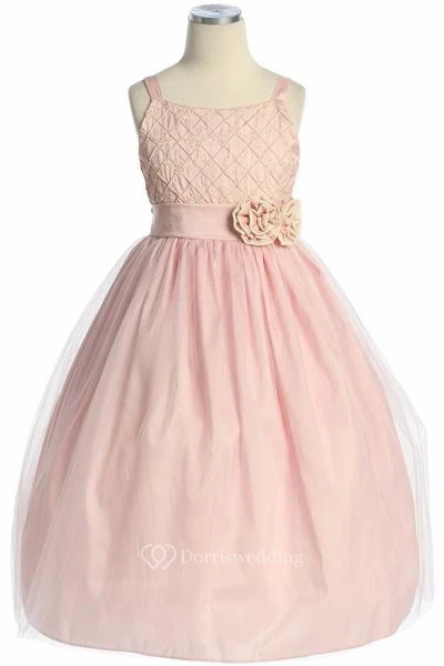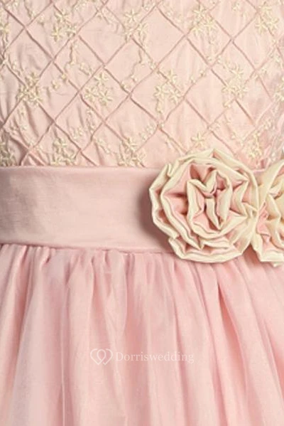 Tea-Length Embroideried Sleeveless Tulle&Taffeta Flower Girl Dress