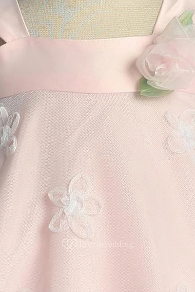 Tea-Length Embroideried Tiered Organza&Charmeuse Flower Girl Dress