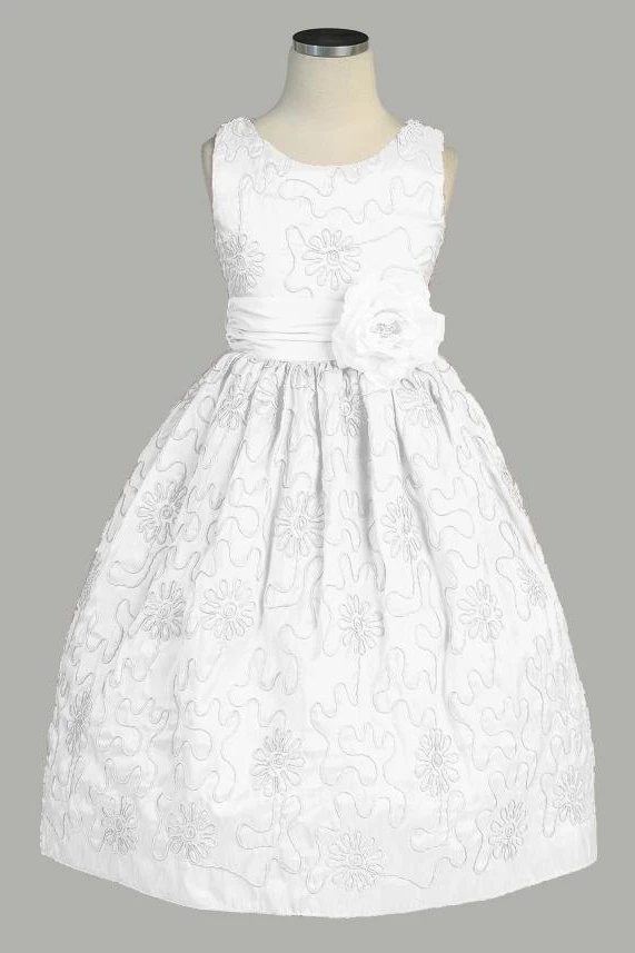 Tea-Length Floral Embroideried Taffeta Flower Girl Dress