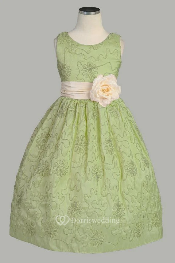 Tea-Length Floral Embroideried Taffeta Flower Girl Dress