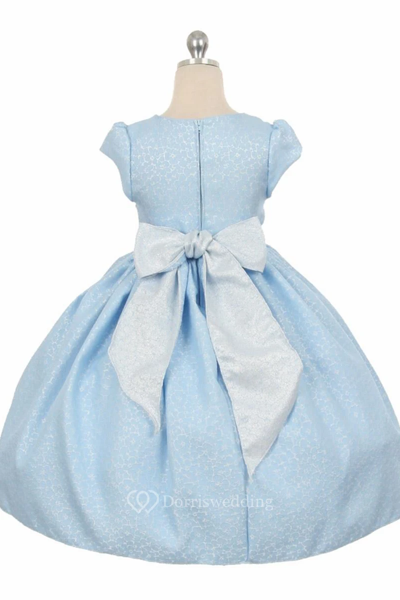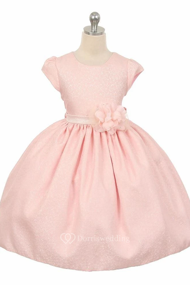 Tea-Length Floral Floral Beaded Flower Girl Dress With Ribbon