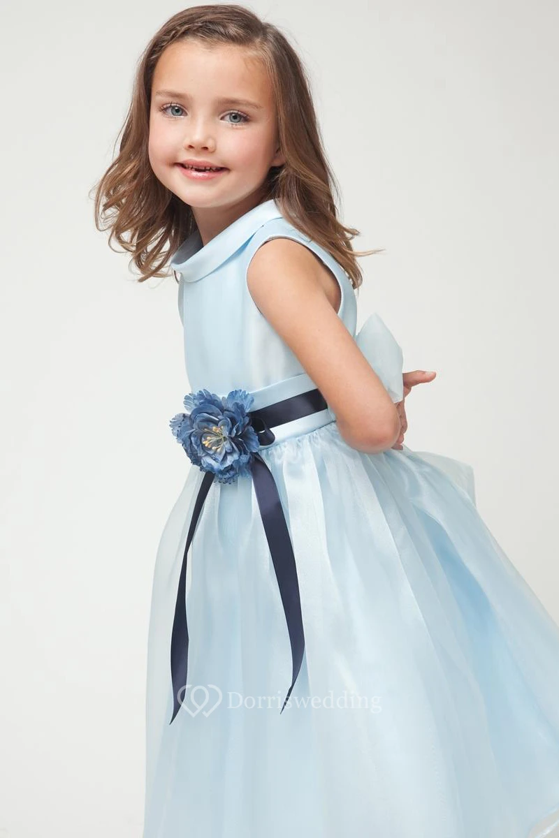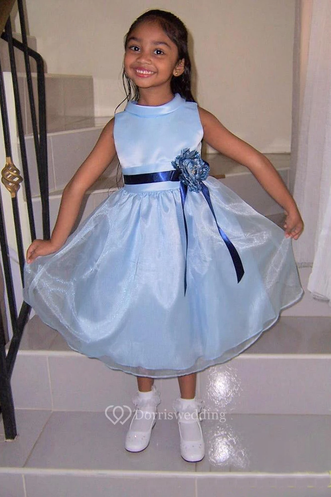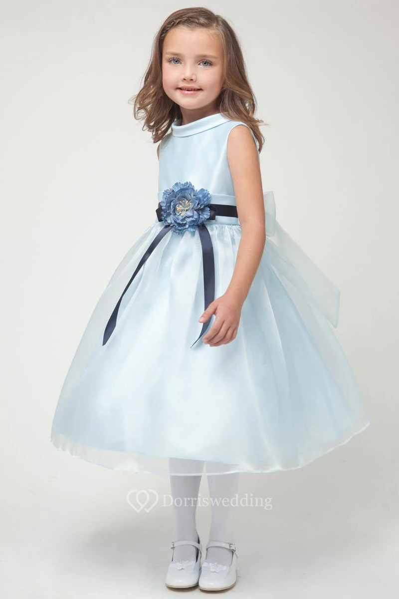 Tea-Length Floral Floral Organza&Satin Flower Girl Dress