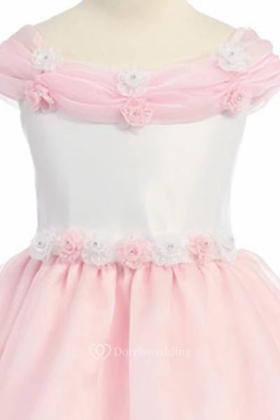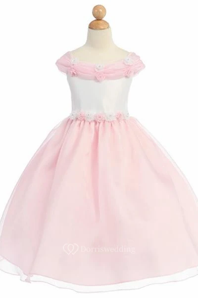 Tea-Length Floral Floral Organza Flower Girl Dress
