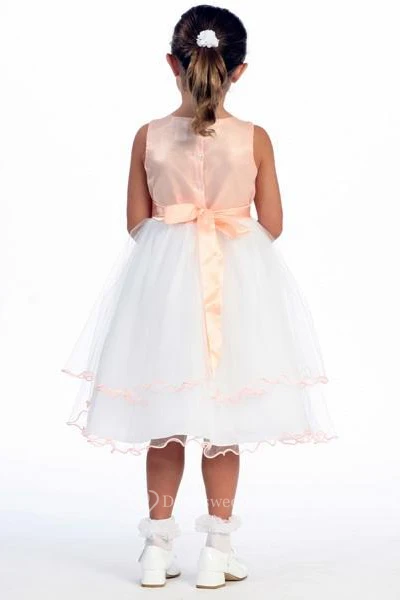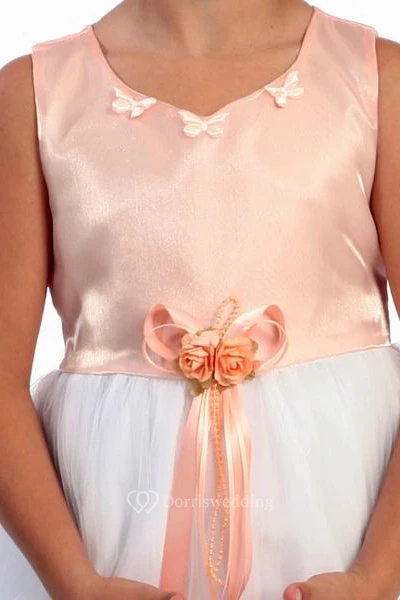 Tea-Length Floral Floral Tulle&Satin Flower Girl Dress