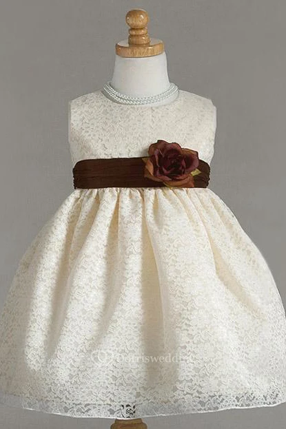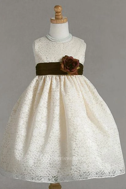 Tea-Length Floral Lace Flower Girl Dress