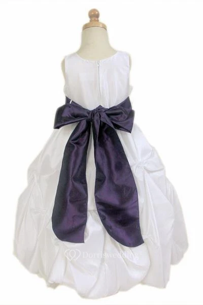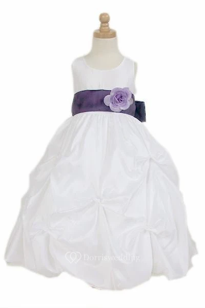 Tea-Length Floral Pick Up Taffeta Flower Girl Dress
