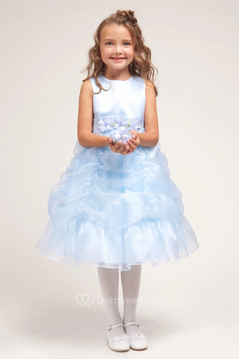 Tea-Length Floral Ruched Floral Organza&Satin Flower Girl Dress With Sash