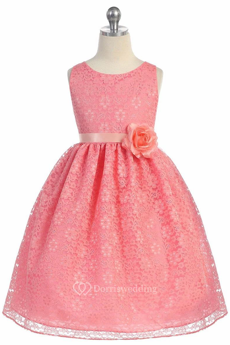 Tea-Length Floral Tiered Lace Flower Girl Dress